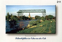 Osten wurde zwischen 1875 bis 1890 in der eisfreien Zeit monatlich von 132 bis 192 Schiffen angelaufen. Im Jahr 1867 gab es im Amt Neuhaus, zu dem auch die Gemeinde Osten zählte, 38 Seeschiffe und 73 Fluß- und Wattschiffe. Besonders verbreitet um diese Zeit war der sogenannte Elb-Ewer mit einer Ladefähigkeit bis zu 150 Tonnen. Aber auch die holsteinischen Prahme, die hannoverschen Segelschuten und schnelle Jollen waren typisch für die Niederelbe. Am 18. 7. 1839 fuhr zum ersten Mal ein Dampfschiff, die "Elbe", den Fluß bis Osten hinauf. Im Jahr 1889 wurden 316 Dampfer gezählt. Ende des Jahrhunderts fuhren die "Stader Dampfer" regelmäßig von der Oste-Mündung bis nach Hamburg-Altona. Das Vordringen der Eisenbahn und der zunehmende Lastwagenverkehr führten zum Niedergang der Schiffahrt auf der Oste. Für den Landverkehr bildete der Fluß seit Urzeiten ein natürliches Hindernis. Wegen des regen Schiffsverkehrs konnten keine festen Brücken gebaut werden. Eine Zugbrücke bei Kranenburg wurde im Dreißigjährigen Krieg zerstört. Fähren sind an der Oste seit dem Mittelalter nachweisbar. "Hauptfähren" entstanden in Geversdorf, Oberndorf, Osten und Hechthausen. Hier konnten Gespanne übergesetzt werden. An anderen Stellen gab es Kahnfähren, die zum Teil bis heute zum Übersetzen von Mensch und Vieh genutzt werden. Erst 1935 erstellte man bei Hechthausen eine feste Straßenbrücke als Ersatz für eine Fähre im Verlauf der heutigen Bundesstraße 73. Belege weisen darauf hin, daß in Osten bereits um 1300 eine Fähre betrieben wurde. Sie befand sich vermutlich auf Höhe der Kirche in einem kleinen Hafen, der 1362 von der Flut zerstört wurde. Im Jahr 1423 wird eine Fähre erwähnt, die sich schon an der Stelle befand, wo später die Schwebefähre gebaut wurde. Seit dem Dreißigjährigen Krieg ist die Ostener Fähre vielfach nachgewiesen. Das Fährhaus, der heutige "Fährkrug", entstand 1764. Die Gastwirtschaft und die Fähre wurden über die Jahrhunderte gemeinsam betrieben. Nur der Inhaber des Fährrechts durfte gegen Entgelt übersetzen. So blieb es bis 1909, als die Schwebefähre Osten eingeweiht wurde. Der erste Bauvorschlag für eine Schwebefähre dieser Art kam von einem englischen Ingenieur. Die erste praktische Ausführung erfolgte 1893 in Portugalete bei Bilbao (Spanien). In Deutschland hat man drei Schwebefähren gebaut. Die Fähre über dem Marinehafen von Kiel mußte gemäß den Bestimmungen des Versailler Vertrages 1918 abgebrochen werden. Die zweite Fähre wurde an der 1910 bis 1913 erbauten Eisenbahnbrücke über den Nord-Ostsee-Kanal aufgehängt. Erhalten geblieben ist uns die Schwebefähre in Osten, und die überragt als Wahrzeichen nicht nur die ganze Gegend, sondern lockt im Jahr auch Tausende von Besuchern an. Daß die Fähre die Zeit blinder Fortschrittsgläubigkeit überstand und nicht "zum alten Eisen gelegt" wurde, verdanken wir der Weitsicht einzelner. Ohne den kämpferischen Einsatz wäre diese Ingenieurleistung ersten Ranges dem Schweißbrenner zum Opfer gefallen. So aber wurde die kritische Phase überstanden und die Fähre der Nachwelt als technisches Baudenkmal erhalten. Ernst