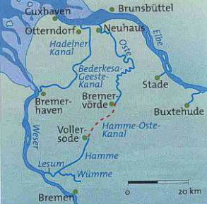 Die Oste ist ein linkselbischer Nebenfluss und war in früheren Zeiten der wichtigste Verkehrsweg für die angrenzenden Marsch- und Geestgebiete. Sie entspringt am Nordrand der Lüneburger Heide und mündet nach 150 Kilometern unterhalb von Neuhaus in die Elbe. Die Fließrichtung wird durch die Gezeiten bestimmt. Der Tidenhub beträgt an der Mündung 2,70 m und in Bremervörde an der Flutgrenze, 71 Kilometer von der Flußmündung entfernt, noch 1,30 m. Die erste Eindeichung des Flusses war bis zum Ende des 13. Jahrhunderts abgeschlossen. Deichbrüche wie bei der großen Sturmflut 1962 traten bis weit in das Hinterland auf. Dies führte 1964 bis 1968 unterhalb von Neuhaus zum Bau eines Sperrwerks, das bei Sturmfluten geschlossen wird. Wie auf den anderen Nebenflüssen der Elbe wurde der Warenverkehr aus diesem Gebiet mit Hamburg, Holstein und dem Ausland nahezu ausschließlich auf dem Wasserweg abgewickelt. Die Oste war von der Einmündung des Hamme-Oste-Kanals ab schiffbar. Bei durchschnittlichem mittlerem Wasserstand konnten Schiffe mit 2 m Tiefgang bis nach Bremervörde fahren. Meist wurde mit dem Strom gesegelt oder auch die Gezeitenströmung allein zur Fortbewegung genutzt. Wie bedeutend der Schiffsverkehr im vorigen Jahrhundert war, veranschaulicht die folgende Tabelle: 1834: 4804 Schiffe