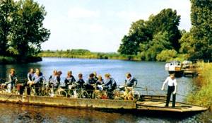 Prahmfähre. Auf der anderen Osteseite radelt man weiter nach Brobergen