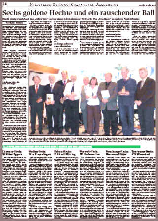28. 2. 2009. Fast 200 geladene Gäste aus Politik, Kultur und Vereinsleben feierten in der Nacht zum Sonntag im Gasthof Pülsch in Bremervörde-Iselersheim erstmals einen "Ball der Oste". In festlichem Rahmen vergab die gemeinnützige Arbeitsgemeinschaft Osteland zum fünften Mal ihren mit insgesamt 3000 Euro dotierten Kulturpreis "Der Goldene Hecht" an Männer und Frauen, die sich um die Region entlang des längsten niedersächsischen Nebenfluß der Elbe verdient gemacht haben.