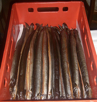 Zum Abschluß der gut besuchten Versammlung servierten die Vereinsdamen den Teilnehmern wie in jedem Jahr zum Schnaps Räucheraal und Schwarzbrot.