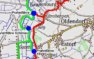 Natürlich wurde auch Osten nicht ausgelassen, wo die Fahrradroute der Deutschen Fährstraße die Flußseite wechselt.