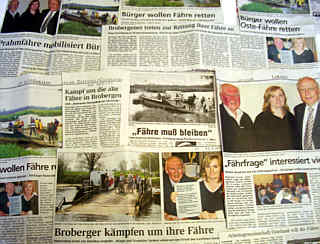 24. 3. 2007. Überraschende Wende im Fall der Fähre Brobergen: Am Sonnabend nachmittag hat der Ostedeichverband mitgeteilt, dass die letzte motorbetriebene Prahmfähre auf der Oste erhalten bleiben kann. Fähre und Fährhaus sollen von der vorgesehenen Ausdeichung ausgenommen werden. Die Fährstelle wird nicht geflutet.