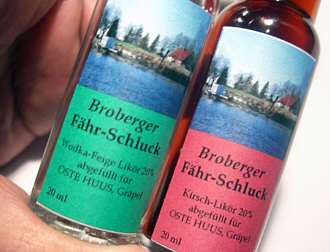 Das "Oste-Huus" in Gräpel hat zur Feier des Tages eigens einen "Broberger Fähr-Schluck" in den Geschmacksrichtungen Kirsch und Feige abfüllen lassen.