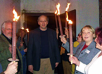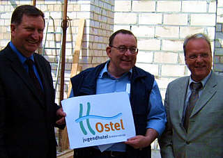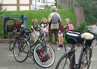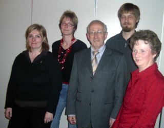 5. 3. 2007. Drei Touristen aus der Schweiz sind - wie berichtet - im Sommer die Elbe und die Oste entlang gewandert; sie fanden die Flußlandschaft "sensationell" und schwärmten vom Gräpeler "Osteblick", wo sie unter anderem dem legendären Gastwirt und Fährmann Helmut Plate (2. v. l.) und dem Osteland-Vorsitzenden Gerald Tielebörger (2. v. r.) begegneten.