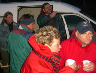 2. 3. 2007. Drei Touristen aus der Schweiz sind - wie berichtet - im Sommer die Elbe und die Oste entlang gewandert; sie fanden die Flußlandschaft "sensationell" und schwärmten vom Gräpeler "Osteblick", wo sie unter anderem dem legendären Gastwirt und Fährmann Helmut Plate (2. v. l.) und dem Osteland-Vorsitzenden Gerald Tielebörger (2. v. r.) begegneten.