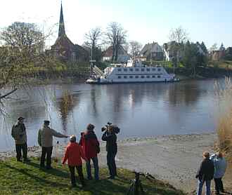 Zur Unterstützung der Broberger Fährfreunde waren auch die Schriftstellerin Elke Loewe (Drochtersen-Hüll) und der Maler und Verleger Wolf-Dietmar Stock (Fischerhude) erschienen, die im vorigen Jahr gemeinsam das Buch "Die Oste von der Quelle bis zur Mündung" herausgegeben haben.