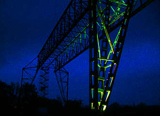 Die Schwebefähre über der Oste wird nach Abschluß einer Spendenaktion noch dieses Jahr mit Hilfe von privaten Geldern illuminiert werden; Vorbild waren die eindrucksvoll beleuchteten "Schwesterfähren" in Bilbao, Newport und Rochefort. In Osten hat eine erste Beleuchtungsprobe des Oberndorfer Fachunternehmens Uhtenwoldt GmbH am 3. Mai ein vielversprechendes Resultat erbracht.