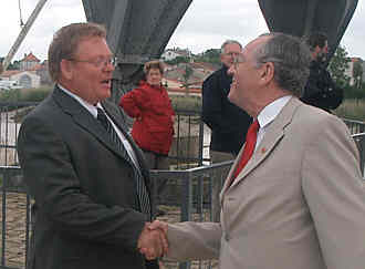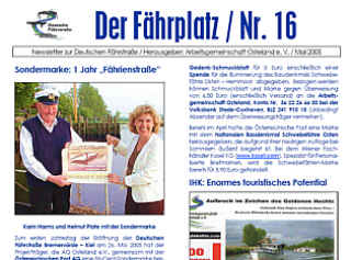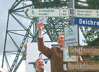 Sibbel und Hubert, deren Gemeinden kürzlich eine kommunale Partnerschaft vereinbart haben, wiesen darauf hin, dass die gemeinsame touristische Vermarktung der beiden Fähren insbesondere seit der Eröffnung der Deutschen Fährstraße Bremervörde - Kiel im Mai 2004 durch die Arbeitsgemeinschaft Osteland e.V. gute Fortschritte mache.