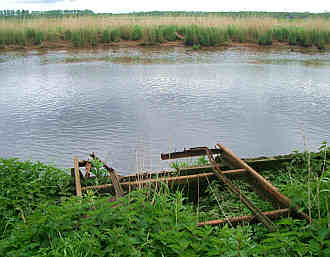 In der Nähe der Prahmfähre von Brobergen, im "Dreiländereck" zwischen den Landkreisen Rotenburg, Stade und Cuxhaven, erinnern noch ein paar rostige Schienen im Ostedeich an den drei Kilometer langen Bahndamm, der einst die Ziegelverladestelle am Fluss mit der 1901 gegründeten und 1971 abgebrochenen Fabrik in Nindorf verband.