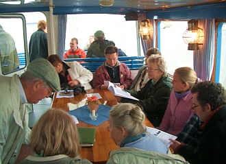 Hubert referierte über die zur Zeit laufenden Reparaturarbeiten, die bevorstehende Wiederaufnahme der touristischen Demonstrationsfahrten zwischen Osten und Hemmoor, die geplante Illuminierung, den im Mai 2006 erstmals stattfindenden Ostener Fährmarkt und über den Wunsch, eines Tages die Touristen in einem Besucherzentrum über die "Schwesterfähren" in Spanien, Frankreich, Großbritannien und Argentinien informieren zu können.