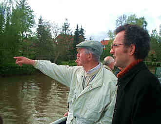 An Bord der "Mocambo" erläuterte der Heimatforscher und Elblotse Holger Kuhne (Geversdorf), wo überall am Flußufer einst der Boden "abgeziegelt" worden ist.