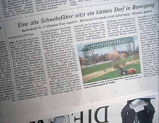 22. 8. 2006. Das Osteland erwacht aus dem Dornröschenschlaf, seit die Schwebefähre wieder in Betrieb ist - Tenor eines Berichts in der Tageszeitung "Die Welt" (Dienstagausgabe).