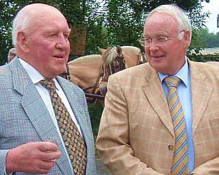 Am Rande der Hansecup-Regatta am Wochenende in Rendsburg setzte sich Bruhn in einem Gespräch mit Osteland-Vorstandsmitglied Jochen Bölsche (Foto r.) für eine Förderung des Rad-Tourismus am Kanal - und damit auf der Nordroute der Deutschen Fährstraße Bremervörde - Kiel - ein.