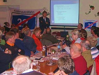 20. 10. 2007. �Mischen Sie sich ein und machen Sie Ihre Rechte geltend," appellierte der Fachanwalt Michael Günther (Hamburg) an rund 170 Besucher einer Info-Veranstaltung der Bürgerinitiative gegen die A 22 in Engelschoff. "Keiner verließ den Abend unzufrieden�, resümierte BI-Sprecher Jörg Stark. Die "Kampfeslust" gegen sei gestiegen. Ein ausführlicher Bericht erscheint in Kürze auf der Website der BI erscheinen.
