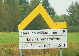 3. 10. 2008. Im Bremervörder Hafen heißt die "Gelbe Welle" seit kurzem die Gäste der Stadt willkommen. Auf dem Schild am Sportboothafen informieren Piktogramme die Sportbootfahrer darüber, welche Angebote sie erwartetn. So gibt es Hinweise auf die vorhandenen sanitären Einrichtungen, die Ver- und Entsorgungsmöglichkeiten, das gastronomische Angebot sowie den Natur- und Erlebnispark am Vörder See.