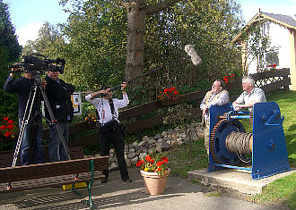 7. 10. 2008. Einer der bedeutendsten Lichtkünstler der Welt, Michael Batz, hat auf Einladung des Ostener Fährvereins das nationale Baudenkmal Schwebefähre Osten - Hemmoor besucht und die Möglichkeit geprüft, sie zum Jubiläum im Jahr der Oste zu illuminieren. Während einer Fährfahrt informierten die Vorsitzenden Horst Ahlf und Karl-Heinz Brinkmann über Geschichte und Technik der Fähre. Die Jubiläums-Illuminierung könnte an den Festtagen vom 1. bis 4. Oktober 2009 die Schwebefähre neu erstrahlen lassen.