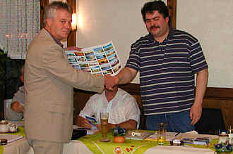 Die angenehme Stimmung brachten zwei Besucher: Gerald Tielebörger und Jochen Bölsche sind erster und zweiter Vorsitzender der Arbeitsgemeinschaft Osteland. Tielebörger sprach die Einleitung, Bölsche stellte das Projekt Deutsche Fährstraße vor, das am Mittwoch, 26. Mai, mit einem Festakt in Bremervörde offiziell eingeweiht wird.