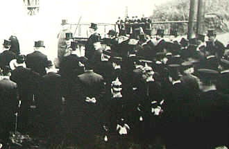 11. 9. 2004. Als die Schwebefähre über die Oste vor 95 Jahren eingeweiht wurde, trugen alle Honoratioren Zylinderhüte (Foto unten).