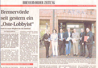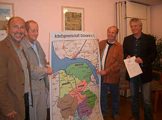14. 9. 2004. Hoch erfreut hat sich der Vorstand der Arbeitsgemeinschaft Osteland e. V. am Dienstag über den Beitritt der Stadt Bremervörde geäußert. Bürgermeister Eduard Gummich, der das Aufnahmedokument überreichte, erklärte, die Stadt sei "froh und stolz", an dem touristischen Projekt mitwirken zu können.