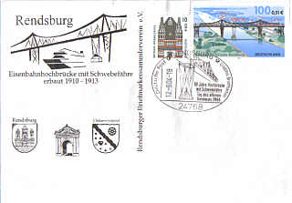 6. 9. 2004. Die Stempelfarbe ist noch frisch: Seit dem Wochenende sind die ersten Sammlerstücke - Ersttagsbrief, Gedenkblatt, Sonderstempel - fertig, mit denen der Rendsburger Briefmarkensammlerverein zum "Tag des offenen Denkmals" an die Eröffnung der Schwebefähre über den Kanal vor 90 Jahren erinnert.
