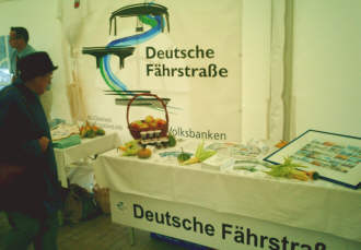 Die AG Osteland war im Festzelt am Nord-Ostsee-Kanal mit einem ständig umlagerten Informationsstand vertreten, an dem Angelika Hubert und Renate Wendt aus Osten sieben Stunden lang nicht nur Prospekte über die Deutsche Fährstraße bereit hielten, sondern auch Ostener Fährschnaps (Armagnac mit Pflaume) verkauften, den sich viele der insgesamt rund tausend Besucher schmecken liessen.