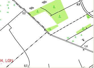 ... in der heute Grünland vorherrscht, wie dieser Ausschnitt aus einer modernen topographischen Karte zeigt, ...