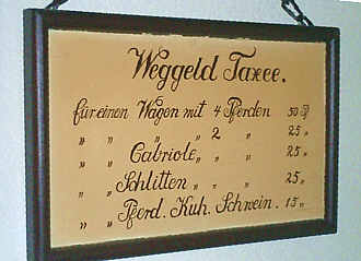 Dass die Scheidung nicht nur, von Ausnahmen abgesehen, die Wasserscheide zwischen Oste und Elbe markiert, sondern auch (zum Teil bis auf den heutigen Tag) auch eine politische Grenze, an der zeitweise Wegezoll erhoben wurde, zeigt eine alte Tafel mit der "Weggeld Taxee" im Gasthaus Bartels, dem idealen Ausgangs- oder Endpunkt für Spaziergänge auf der Scheidung.