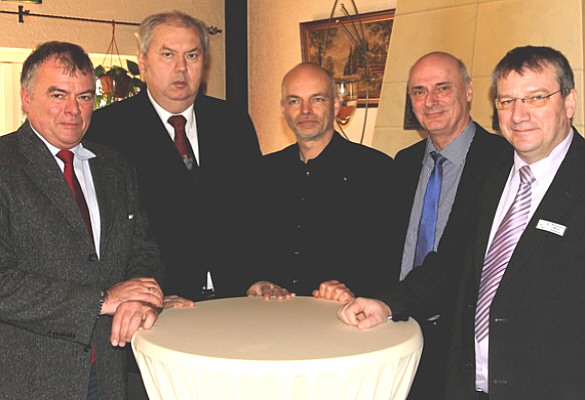 Schlobohm (r.) verabschiedet Wandrey (2. v. r.) Am Sonnabend wurde der gebürtige Kieler, der auch der AG Osteland angehört, im Gasthaus "Zur Linde" unter anderem vom Wingster Bürgermeister Michael Schlobohm (SPD) in Anwesenheit vieler Gäste mit einem großen Dankeschön in den Ruhestand verabschiedet.