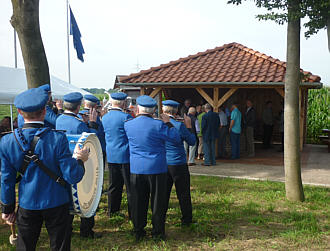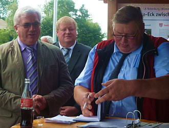 21. 8. 2011. Als gelungenes "Beispiel interkommunaler Kooperation über Kreisgrenzen hinweg" hat der Lamstedter Samtgemeinde-Bürgermeister Werner Otten am Sonntag die neue Schutzhütte am Schnittpunkt der drei Ostelandkreise Cuxhaven, Stade und Rotenburg bezeichnet.