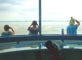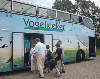 Die Anfahrt erfolgte mit dem neuen, 350.000 Euro teuren Vogelkieker-Bus mit Panorama-Glasdach in Betrieb ab Natureum. Aus Naturschutzgründen ist der Turm in diesem Jahr nur noch an zwei Tagen zugänglich: am heutigen 21. Juli sowie am 4. August. Da nur eine begrenzte Anzahl an Plätzen bereitsteht, empfiehlt sich eine schnelle Anmeldung unter Telefon 04753/842-110 oder info@natureum-niederelbe.de.