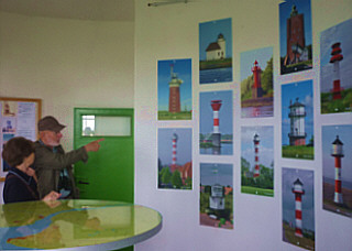 Viel Anklang fanden auf den vier begehbaren Etagen die Infoausstellungen über Vogelwelt, Leuchttürme und die Geschichte des "Kleinen Baljer", gestaltet unter anderem von drei AG-Osteland-Mitgliedern: Diplom-Biologe und Journalist Christian Schmidt (Thema Elbästuar), Diplom-Designer Nikolaus Ruhl (Landkarten) und Leuchtturm-Retterin Waltraud Gebhardt (Turmhistorie). Fachkundige Erläuterungen gaben vor Ort Diplom-Biologin Stephanie Voigt (Verein Naturerlebnisse) und Thomas Bock (Natureum Niederelbe).