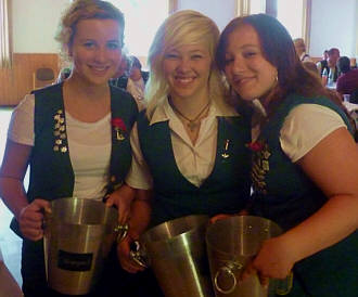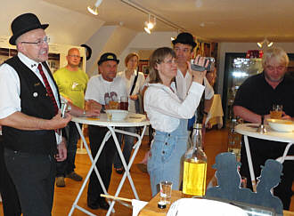 8. 8. 2011. Mit dem traditionellen "Schützengericht" endete heute mittag des diesjährige Schützenfrühstück in der voll besetzten Ostener Festhalle: Mit je 5 Euro Bußgeld bestrafte Kassenführer Sven Röndigs mit humorvoller plattdeutscher Begründung Wildpinkeln, Rosendiebstahl und Uniformsünden wie blaue Socken zum grünen Rock. Ostens Jungschützinnen sammelten in Sektkübeln die Bußgelder zugunsten der Jugendarbeit ein.
