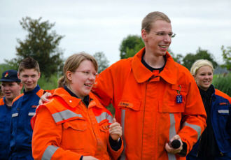 30. 7. 2011. Überraschung auf dem Ostefest des Gewerbevereins Hechthausen: Nachdem Moderator Eike Elser am Sonnabend die Eröffnungsrede gehalten hatte, gab er das Mikrofon an Feuerwehrmann Fabian Knoop weiter. "Alle dachten an eine weitere Rede und waren ziemlich erstaunt, als er seine Freundin und Feuerwehrkameradin Corinna Kohrs zu sich bat, auf die Kniee sank und ihr vor versammelter Mannschaft einen Heiratsantrag machte," berichtet die Hechthausener Fotografin Gundula Ida Gäntgen, die diesen Moment mit der Kamera festhielt: "Einen Ring hatte er auch dabei in seiner Feuerwehruniform. Seine Freundin war genauso baff wie wir alle."