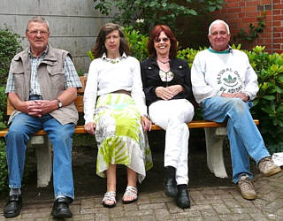 1. 8. 2011. Im ganzen Osteland unterstützt der Ostener Benefiz-Verein Hökerstube e. V. seit Jahren gemeinnützige Zwecke. Rechtzeitig zum Schützenfest übergaben jetzt Petra Vogel (2. v. l.) und Hilly Glasmacher vom Vereinsvorstand, unterstützt von ihren Mitstreitern Elfers (l.) und Hamann (r.), der Gemeinde Osten eine Ruhebank für die Fährstraße.
