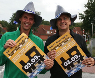 31. 8. 2011. Bayrische Akzente wollen die Veranstalter des Hemmoorer Bahnhofstraßenfests setzen, das an diesem Sonnabend, 3. September, 13 Uhr, zum 21. Mal so weit ist: Das Event soll auch als "Oktoberfest" beworben werden, wie Ulrich Schröder und Frank Zöllner vom Festkomite mitteilen. "Oktoberfesthüte" gibt's am Sonnabend für 1,50 Euro im "Schuhtick". Wenn das Fest um 13 Uhr auf der Bühne an der Post eröffnet wird, hat sich die Bahnhofstraße wieder in eine bunte Allee mit vielen Ständen, Zelten, Buden und Infomobilen verwandelt.