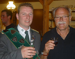 Auf dem Saal kam es zu vielen Gesprächen zwischen den Vertretern der beiden Gemeinden, zum Beispiel zwischen dem amtierenden Ostener Schützenkönig Karsten Röndigs und dem O'felder Wählergemeinschafts- Mitbegründer Klaus Ströh, einem der "Urgesteine" der Partnerschaft zwischen den beiden Schwebefähren-Orten.