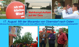 Viel los ist wieder in der Samtgemeinde Am Dobrock. Bereits am Dienstag bot dort die Tourist-Info Wingst eine Radtour mit Gästeführer Eddy Uhtenwoldt zum Oberndorfer Restaurantschiff "Ostekieker" an. Von Freitag bis Sonntag, 26. bis 28. August, lädt der Heimat- und Kulturverein Geversdorf um Günter Lunden zu Veranstaltungen unter dem Motto "Ein Dorf und sein Fluss" (mehr). Am Sonntag von 11 bis 17 Uhr veranstaltet das Wasserwerk Wingst einen Tag der Offenen Tür.