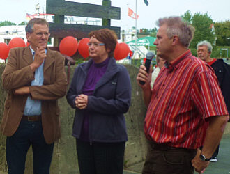 Glückwünsche überbrachten unter anderem Samtgemeindebürgermeister Holger Falcke (Himmelpforten) als Vertreter der drei beteiligten LEADER-Regionen, der Osteland-Preisträger und Retter der benachbarten, mittlerweile nach ihm benannten Prahmfähre Helmut Hudaff sowie der ROW-Vizelandrat Reinhard Brünjes.