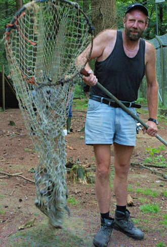 30. 7. 2011. Sie waren gerade mal vier Monate auf dieser Welt, da wurden die fünf Wolfswelpen im Zoo in der Wingst die Woche zum ersten Mal "gejagt". Tierpfleger Torsten Oellerich nannte es "Einhüten", und nüchtern betrachtet wurden die Jungwölfe genötigt, in das kleinere Absperrgehege des großen Wolfsfreigeheges zu gehen. Hier erwartete sie Tierärztin Sabine Raethel mit fünf Spritzen gegen Tollwut und Staupe, denn auch kleine Wölfe müssen wie jeder Hund gegen diese Gefahren geimpft werden. Theoretisch war alles ganz leicht, aber die Kleinen kannten sich auch in diesem Teil ihres Reviers gut aus und fanden Erdhöhlen, aus denen sie nicht so einfach herauszuholen oder zu vertreiben waren. Letztlich landeten sie aber alle im Kescher von Torsten Oellerich und entgingen der Gesundheitsspritze nicht.