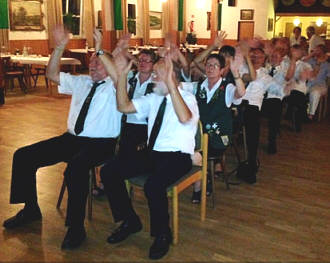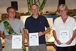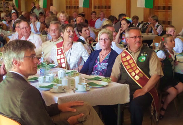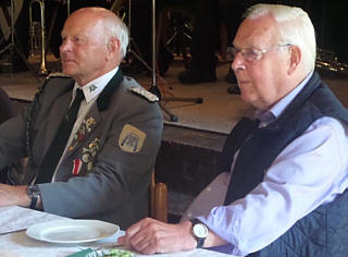 ![]() Osterrönfelder Schützen in Osten 5. 8. 2013. Dass Kassenführer Sven Röndigs beim montaglichen Schützenumzug und beim Frühstück im Osteland-Festhaus zwecks "Völkerverständigung" die Weste der Schützen aus der Partnergemeinde Osterrönfeld trug - auch das signalisierte wieder einmal, wie eng und herzlich die Beziehungen zwischen den beiden deutschen Schwebefährendörfern sind (siehe unsere SONDERSEITE). ![]() Umzug zum Frühstück im Osteland-Festhaus Erneut waren die O'felder mit einer starken Delegation angereist - unter anderem mit dem amtierenden Königspaar Uwe Tödt und Ute Kolb sowie Präsident Thomas Sienknecht; am Sonntag war auch Bürgermeister Bernd Sienknecht mit dabei. Sein Ostener Amtskollege Carsten Hubert würdigte die Rolle der Schützenvereine als "große Stütze der Gemeindepartnerschaft". ![]() Einladung zur O'feld-Fahrt als PDF, als docx Zum Schützenfest am Kanal - zeitgleich mit dem Eon-Hansecup-Ruderrennen am 14./15. September und unmittelbar nach der 100-Jahr-Feier der Rendsburger Schwebefähre - werde, so Hubert, eine starke Reisegruppe der AG Osteland an den Kanal fahren - siehe unten. ![]() Ehrenpräsident Guthahn, Ehrenlandrat Döscher In diesem Zusammenhang appellierte Hubert an seinen Parteifreund Enak Ferlemann ("Wir haben uns vor 30 Jahren in der Jungen Union kennengelernt"), er möge sich als Verkehrsstaatssekretär für eine Verbesserung der Verkehrsinfrastruktur an der Niederelbe einsetzen - ein Stichwort, das der CDU-Wahlkämpfer gern aufgriff ("ein Elfmeter ohne Torwart"): Die Vorarbeiten für einen Maut-Tunnel unter der Elbe seien so weit gediehen, dass - so Ferlemann an die Adresse Huberts - "wir beide, wenn wir 60 sind, durch den Tunnel fahren können", also "2023/24/25". Diese Zeitangabe veranlasste den 78-jährigen Ehrenlandrat Martin Döscher wiederum, in seinem Grusswort an Ferlemann zu appellieren, doch "en beten mehr Gas" zu geben - er wolle die Tunneleinweihung schliesslich noch erleben. ![]() Edda Renelt an der Schießbude Am Montagabend stand zum Abschluss des Fests die Proklamation der neuen Könige auf dem Programm. Am Sonntag hatten sich bei einem inoffiziellen Fun-Königsschießen an der Schießbude der Arzt Dr. Manfred Toborg und die Apothekerin Dr. Edda Renelt qualifiziert. ![]() Neuer Ostener König Klaus Heinrich Buck Am Sonntagabend wurde Edda Renelt ganz offiziell als Königin ausgerufen, an der Seite von König Klaus-Heinrich Buck: Der Freizeitskipper ("De Ont") hatte nach eigenem Bekunden zuletzt vor 40 Jahren auf die Scheibe geschossen. - Die Namen der besten Schützinnen und Schützen stehen hier. ![]() ![]() Jungschützen- und Urlauberkönig 2013 Zuvor waren die Kinderkönige Gesa Renelt und Otto Peters sowie die Jungschützenkönigin Agata Dodenhoff (auf unserem Foto mit den Preisträgerinnen Vanessa Borchardt und Sina Bardenhagen) von Präsident Wilfried Röndigs proklamiert worden, ferner der Urlauberkönig Michael Tederan (mit Thomas Lübbehüsen aus Hamburg und Karin Stöckchen aus Henstedt-Ulzburg). ![]() Kinderkönige Otto Peters und Gesa Renelt Auch am Schützenfestsonntag wurde im Osteland-Festhaus auch der Geburtstag von Willi Frahm gefeiert, der mit der starken Schützen-Delegation aus Osterrönfeld angereist war. ![]() ![]() Für oste.de fotografierten Wilfried Röndigs und Jochen Bölsche. Mehr über das Fest steht demnächst auf der von Thorben Gruschka gepflegten Website des Schützenvereins Osten, mehr über die Freundschaft mit Osterönfeld hier.