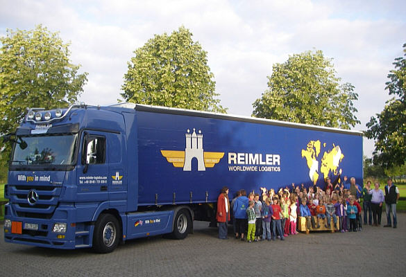 Das Frachtgut wird an der Schule abgeholt Der Einbaum ist Ergebnisse eines Schulprojekts, das der Oberndorfer Dipl.-Kunsttherapeut Michael Bungard ("Kunstwerk Grün") mit den Grundschülern realisiert hat und über das inzwischen auch ein sehenswertes Youtube-Video informiert.