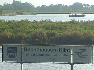 Hechthausener Ostefähre "Püttenhüpper" Bei einer Art Gipfeltreffen in Hechthausen-Klint und auf der Hechthausener Ostefähre "Püttenhüpper" legten jetzt die Landräte Michael Roesberg (Stade) und Kai-Uwe Bielefeld (Cuxhaven) ein Bekenntnis zur Oste und zu deren weiterer touristischer Erschließung ab. Gegenüber der NEZ (Donnerstag) zeigten sie sich von der Entwicklung der letzten Jahre im nördlichen Osteland angetan: Die Gemeinden zwischen Bremervörde und Balje hätten durch touristische Investitionen gezeigt, "daß die Oste keine Grenze darstellt, sondern verbindet": "Dies gilt es weiter zu fördern."