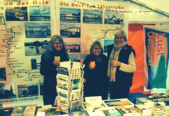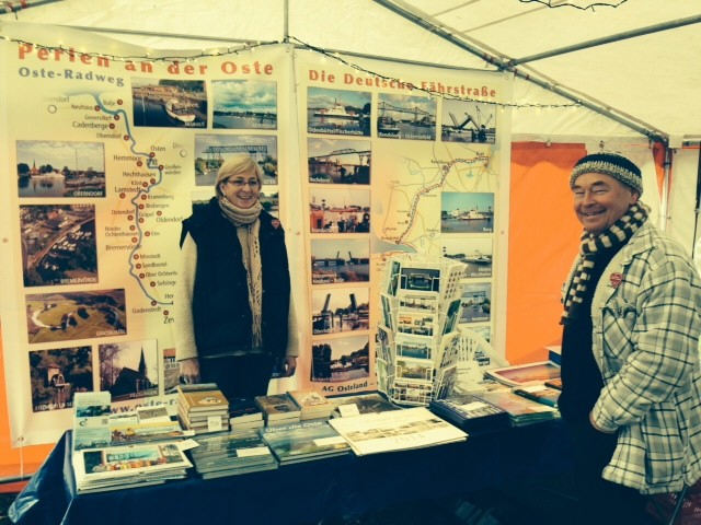 Eybe Schönteich und Hennig Kuhne beim Aufbau des Info-Standes auf dem 36. Oberndorfer Weihnachtsmarktes Gabi Pilzweger, Christel Mix und Barbara Narzinski Ulrich und Barbara Narzinski Mocambo-Käpt'n Caspar Bingemer