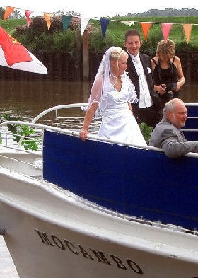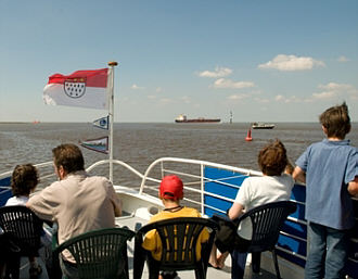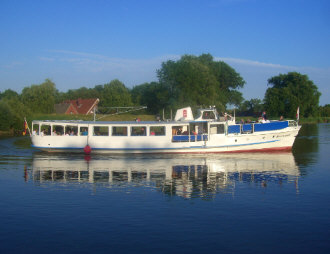 Der schneeweiße Oldtimer - Heimathafen: Oberndorf (Kreis Cuxhaven) - ist aus Sicht der AG Osteland nicht nur das "Flaggschiff' des Ostetourismus", sondern als bundesweit ältestes Schiff dieser Art neben der ältesten Schwebefähre Deutschlands in Osten/Oste "das wichtigste Alleinstellungsmerkmal" der auf Tourismus angewiesenen "strukturschwachen Region im Zentrum des Elbe-Weser-Dreiecks". Abgesehen von den "desaströsen Auswirkungen auf den Ostetourismus" würde eine Einstellung der Personenschifffahrt, so der Verein, auch einen "Schildbürgerstreich von enormen Dimensionen" darstellen: In den letzten drei Jahren habe die öffentliche Hand einen "Betrag in siebenstelliger Höhe" in fünf neue Fahrgastschiffanleger in den Orten Balje, Oberndorf, Osten und Hechthausen investiert, ein weiterer Anleger in Großenwörden (Samtgemeinde Himmelpforten) soll demnächst folgen. Dem Mocambo-Kapitän fehlt aus Sicht der Behörden das "richtige" Patent. Dazu Caspar Bingemer: "Nach über 40 Jahren Tätigkeit in der Schifffahrt, davon 34 Jahre mit Patent AGW, 24 Jahre als Schiffsführer in der Personenschifffahrt im Hamburger Hafen und 9 Jahre auf der Oste, musste ich kürzlich erfahren, dass ich mit meinem Patent keine Berechtigung habe, Personen auf der Oste einschließlich ihres Mündungsbereichs zu befördern." Dabei hat Bingemer die komplette siebenjährige Ausbildung vom Schiffsjungen bis zum Kapitän auf großer Fahrt absolviert und als 3. und 2. Offizier ein Containerschiff und anschließend einen Massengutfrachter auf der großen Fahrt gefahren. Nach dem Erwerb eines Hafenrundfahrtunternehmens im Jahre 1976 wurde Bingemers sogenanntes AGW-Patent auch von der hanseatischen Hafenbehörde akzeptiert, die ihm der Erlaubnisschein zur "entgeltlichen Personenbeförderung" ausstellte. Wegen der Übernahme der "Mocambo" im Jahre 2001 unterließ es Bingemer, sein AGW-Patent in ein sogenanntes AG-Patent umzutauschen; er hielt das für überflüssig, weil er "nicht mehr in der Personenschifffahrt tätig werden wollte". Auch in Niedersachsen hatte - bis jetzt - niemand das Fehlen dieses speziellen Patents bemängelt, dessen Erwerb für den Käpt'n "objektiv keinen Sinn" machte, weil er bereits "24 Jahre lang Personen auf Schiffen von der Größe der Mocambo im Hamburger Hafen befördert" habe, der ja "sehr viel komplexer ist als die Oste und sicherlich auch über erheblich mehr Gefahrenpotential verfügt." Auf dem stillen Fluss, der unlängst von der Bundes- zur Landeswasserstraße herabgestuft worden ist, existiert mit Ausnahme der Mocambo und gelegentlicher Behördenfahrzeuge praktisch keinerlei Berufsschifffahrt mehr. Um über Planungssicherheit für die nächsten Wochen und Monate zu verfügen, bitten Bingemer und die Mocambo-Eignerin, seine Ehefrau Eibe von Glasow, die Behörden, die "Formalie" kurzfistig durch eine Ausnahmegenehmigung für das Befahren der Unteren Oste zwischen Bremervörde (Kreis Rotenburg/Wümme) und dem Sperrwerk bei Balje (Kreis Stade) sowie der Außenoste bis zum "Tonnenstrich Oste 6 / Oste 7" zu umschiffen. ![]() Trauung auf der "Mocambo" Der Antrag Bingemers (Wortlaut) wird "vollinhaltlich" von der AG Osteland und deren Fachgruppe Schifffahrt und Gewässer ("Blaues Netz Oste") unterstützt. In einem Schreiben an die Behörden verweist die "Lobby für die Oste" auf die Verdienste des Schiffer-Ehepaars, dem bereits 2006 der Osteland-Preis "Goldener Hecht" zuerkannt worden ist. In der Begründung hiess es damals, das Oberndorfer Unternehmen habe seit 2001 "dem Tourismus im Osteland zu einem entscheidenden Wachstumsimpuls verholfen": "Die nach mehrjähriger Unterbrechung seither wieder angebotenen Flußfahrten unter dem Motto 'Ganz entspannt durchs Osteland' haben es Tausenden von Einheimischen und Touristen ermöglicht, die Naturreize der Flußlandschaft an der Unteren Oste kennenzulernen, und die Gastronomie in der Region spürbar belebt."