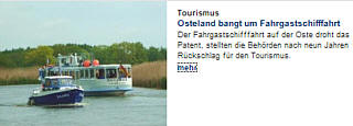 2. 8. 2010. Die Gefährdung des Oste-Wassertourismus und der "Mocambo" hat die niedersächsischen Medien mobilisiert. So berichtet NDR I Niedersachsen am heutigen Montag ab 17 Uhr über den drohenden Fahrerlaubnisentzug für Käpt'n Caspar Bingemer. Wie Osteland-Vorsitzender Gerald Tielebörger den Fall im NDR-Interview bewertet, steht hier. Am Dienstag steht nach Informationen dieser Website ein Gespräch im Cuxhavener Kreishaus über eine mögliche Ausnahmegenehmigung an. Proteste auch