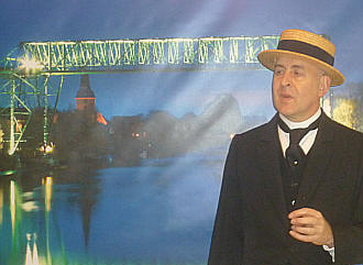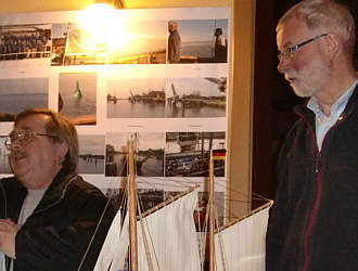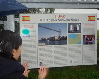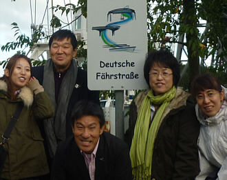 22. 9. 2010. Eine sechsköpfige Delegation aus Japan trifft - am Sonntag in Deutschland ein, um die Deutsche Fährstraße Bremervörde - Kiel zu studieren (siehe nächsten Text). Die AG Osteland hat jetzt ein dreitägiges Besuchsprogramm für die Tourismus-Experten aus Ostasien erarbeitet. ![]() Schwebefähren-Infomeile in Basbeck Begrüßt wird die Delegation am Sonntag vor dem Osteland-Großplakat am Hemmoorer Bahnhof vom Osteland-Vorsitzenden Gerald Tielebörger (Wingst). Dann geht es mit der gelben Europakutsche von Jürgen und Christine Reimer zur Basbecker Fährstraße, wo Osteland-Vize Jochen Bölsche die von ihm konzipierte Internationale Schwebefähren-Infomeile vorstellt, bevor nach der Überfahrt mit der Schwebefähre der Ostener Heimatpfleger Frank auf dem Felde durch die von ihm gestaltete Schwebefähren-Ausstellung in der Fährstuv des Fährvereins führt. Mocambo-Törn