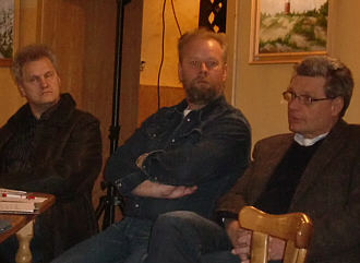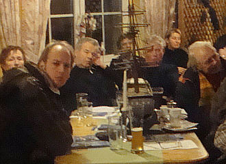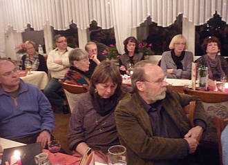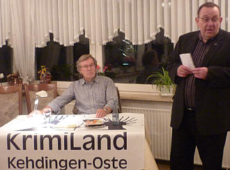 ![]() Bölsche (r.) stellt Krimi-Autor Petschull vor 11. 12. 2010. Trotz Eisregen und Glatteis-Alarm strömten mehr als dreißig Krimifreundinnen und -freunde in den Ostener Fährkrug, wo der ortsansässige Ex-"Stern"-Reporter Jürgen Petschull auf Einladung der AG Osteland aus seinem neuen Thriller "Der fünfte Schatten" las. Gespannt und gebannt verfolgten die Zuhörer einige der präzise, packend und plastisch formulierten Kapitel aus dem in Osten entstandenen Roman, dessen historischer Hintergrund - Lynchmorde an den Besatzungen in Norddeutschland abgestürzter alliierter Bomber - authentisch ist, während die von Petschull beschriebenen aktuellen Spätfolgen dieser Taten Fiktion sind: vier Morde ("Ein toter Mann schaukelt im leichten Wind") im niedersächsischen Golfmilieu. ![]() Hochspannung im Hotel Fährkrug "Wer den Roman angefangen hat, legt ihn nicht wieder aus der Hand," urteilte Dr. Manfred Toborg, Vorsitzender des Vereins Kulturmühle, dem die AG Osteland den Spendenerlös des Abends zur Verfügung stellte, für den Petuschull auf ein Honorar verzichtet hatte. Sein nächstes Buch, verriet der von der Kritik hoch gelobte Autor, werde 2012 erscheinen. Zu Beginn der Veranstaltung hatte Jochen Bölsche vom Vorstand der AG Osteland deren vor fünf Jahren gestartetes Projekt Krimiland Kehdingen-Oste vorgestellt und das literarisch-journalistische Werk Petschulls gewürdigt (siehe Wikipedia-Eintrag). Bölsche liess nicht unerwähnt, dass der Autor, der auch der AG Osteland und dem Ostener Fährverein angehört, schon vor mehr als zehn Jahren im "Stern" eine Liebeserklärung an die Oste ("Wolga für Anfänger") veröffentlicht hat - der Wortlaut steht hier im Netz.
