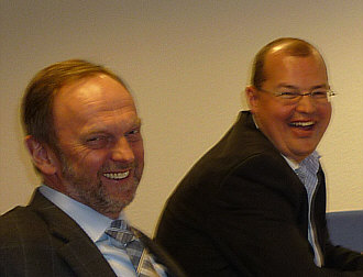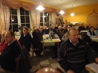 ![]() Tielebörger (l.) begrüßt Jan Tiedemann (r.) 16. 3. 2010. In ihrer Jahreshauptversammlung in der "Ostekrone" in Hechthausen hat die 2004 gegründete gemeinnützige Arbeitsgemeinschaft Osteland e. V. am Montag alle zur turnusmäßigen Neuwahl anstehenden Vorstandsmitglieder einmütig im Amt bestätigt: Stellvertretender Vorsitzender bleibt Jochen Bölsche (Osten), Schriftführerin Sigrid Frömming (Großenwörden), Beisitzer Curt Schuster (Hemmoor). Seit die ehrenamtliche AG Osteland vor sechs Jahren ihre Arbeit aufgenommen habe, sei der Tourismus an der Oste spürbar belebt worden, sagte in seinem Grußwort der Hechthausener Vize-Bürgermeister Jan Tiedemann, der u. a. auf die Beiträge der Gemeinde und des Gewerbevereins zum Jahr der Oste 2009 (Mühlenfest und Tag der Blasmusik) sowie die am 10. April bevorstehende Einweihung des Fahrgastschiffanlegers in Hechthausen-Klint hinwies. Osteland-Vorsitzender Gerald Tielebörger (Wingst) berichteteüber die Zunahme der Mitgliederzahl binnen eines Jahres um etwa ein Drittel auf nahezu 400. Bevor Schatzmeister Johannes Schmidtüber die zufriedenstellende Kassenlage berichtete, hielt Vereinsvize Bölsche Rückblick auf das "Jahr der Oste" und die vielfältigen Aktivitäten des Vereins in den vergangenen zwölf Monaten. ![]() Hauptversammlung in Hechthausen 2009 sei ein Jahr der großen Erfolge, aber auch der "vielleicht noch größeren Herausforderungen" gewesen", sagte Bölsche: "Wir werden uns gegen eine Reihe von negativen Entwicklungen stemmen müssen, die in unserer abgelegenen ländlichen Region immer stärker spürbar werden." Im einzelnen nannte der Osteland-Vertreter den "anhaltende Niedergang vieler Dörfer, die ja zum Teil schon Dorfladen und Dorfkneipe verloren haben und denen nun auch noch das Aus für die Dorfschule und das Ende ihrer Selbständigkeit durch Bildung von Mammutgemeinden droht - und damit der Verlust dessen, was sie besonders lebenswert macht: die Nähe, die Nachbarschaft, die dörfliche Kultur". Landschaft bedroht,