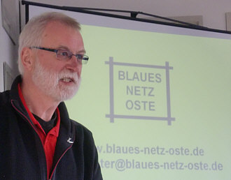 Blaues Netz Oste tagt in Neuhaus ![]() Gründung des Blauen Netzes (im Februar) 4. 4. 2010b. Nach dem überaus vielversprechenden Start des Projekts "Blaues Netz Oste" lädt die Fachgruppe Schifffahrt und Gewässer der Arbeitsgemeinschaft Osteland e. V. zu einem zweiten Treffen am Freitag, 16. April, 19.30 Uhr, im "Hafenschuppen" im Alten Hafen in Neuhaus. Wie der Sprecher der Fachgruppe, Bernd Jürgens (Hemmoor) mitteilt, wird der Neuhauser Bürgermeister Georg Martens in seinem Grusswort über "Neuhaus - Tor zur Oste, Eckpfeiler des Wassersports" sprechen. Uwe Mählmann (Oberndorf) berichtet über anstehende Änderungen im Entwurf der neuen Oste-Verordnung. Die Fachberichsleiterin Bianka Zydek (Bremervörde) referiert zum Thema "Gelbe Welle für Sportboothäfen - Zertifizierung und Werbung, Erfahrungen und Perspektiven." ![]() Hermann Toedter zeigt die Obere Oste Bernd Jürgens sowie Eddy Uhtenwoldt (Oberndorf) und Jochen Bölsche (Osten) präsentieren die Entwürfe eines gemeinsamen Standers der Oste-Skipper, eines neuen Hafenführers und eines Internet-Portals für das Blaue Netz Oste. Auf der Tagesordnung stehen außerdem Großplakate für die Werbung für Wassersport und Wassertourismus auf der Oste sowie ein Dia-Vortrag von Hermann Tödter (Zeven) über das "Naturparadies Obere Oste" von Hermann Tödter (Zeven). Eingeladen sind alle Mitglieder der AG Osteland, die dem Wassersport- und Tourismus verbunden sind.